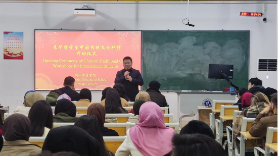 2026年1月26日下午3时,来华留学生中国传统文化研修班开班仪式在揽胜楼Z-602教室隆重举行。本次研修班旨在通过沉浸式文化体验,帮助来华留学生深入感受中华优秀传统文化魅力,促进中外文化交流互鉴。